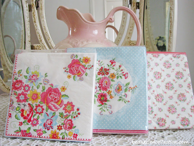 Pretty paper napkins to spruce up my place setting...colorful Maggie White, gorgeous Wendy Pale Blue and Millie White